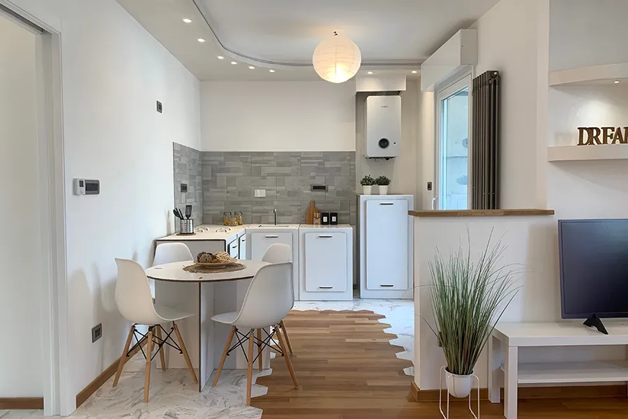 Data la metratura ridotta, abbiamo scelto arredi dai toni chiari e neutri per armonizzarsi con le finiture già molto caratterizzanti. Gli ambienti sono stati allestiti per mostrare funzionalità e comfort abitativo, qualità difficili da percepire in un immobile vuoto o tramite semplici render.
